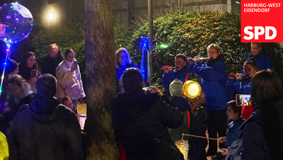 Am 06.11.2025 war heiteres Kinderlachen und fröhliches Singen in den Straßen Eißendorfs zu hören, denn die SPD Harburg-West hatte wieder zu ihrem alljährlichen Laternenumzug eingeladen. Im vergangenen Jahr war der Eißendorfer Laternenumzug der SPD noch in der Lühmannstraße gestartet. Dieses Jahr ging es wieder über die altbekannte Strecke vom Hirschfeldplatz über die Dempwolffstraße, Weinligstraße, Mehringweg und Hoppenstedtstraße durch Eißendorf.
