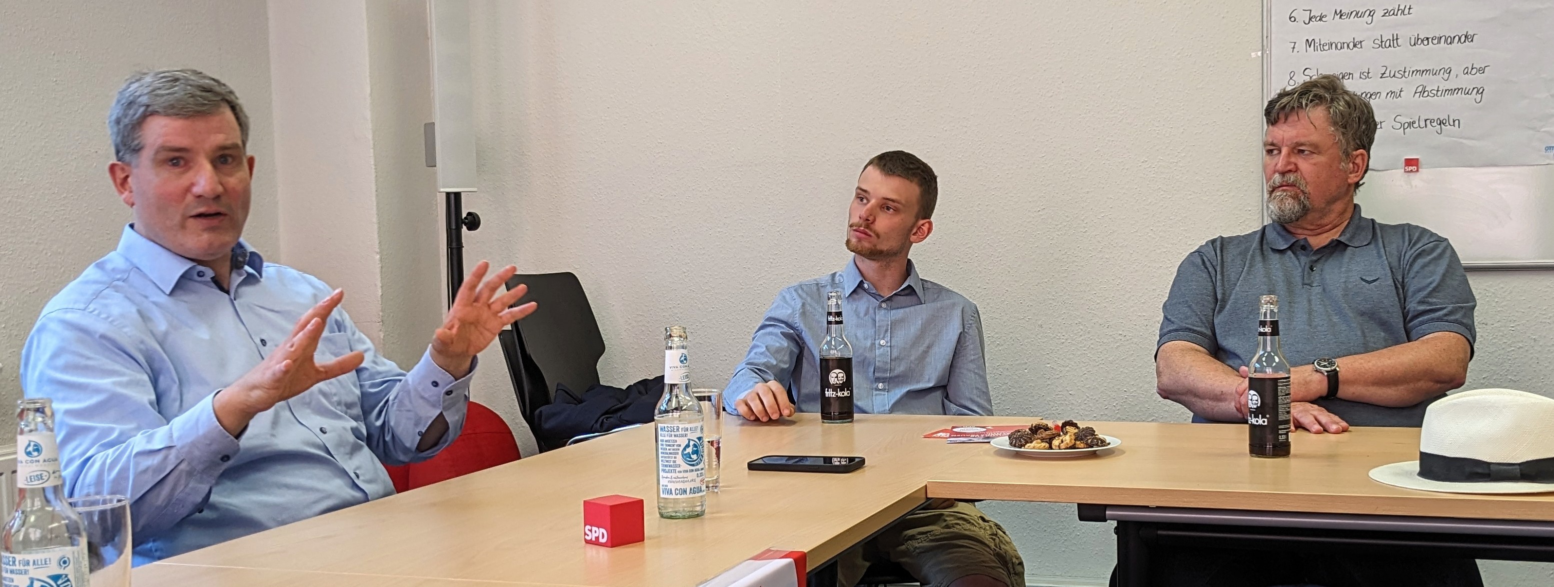 Das Thema Klimapolitik ist auch dem Eißendorfer Distriktsvorsitzenden und Bürgerschaftsabgeordneten Matthias Czech (SPD) sehr wichtig, weshalb er zum gemeinsamen Austausch durch seinen Wahlkreis zieht. Mit seinem Mobilen Abgeordnetenbüro besucht Matthias die verschiedenen Teile Harburgs, um mit den Anwohnern/-innen ins Gespräch zu kommen und ihnen ggf. Fragen zur aktuellen politischen Lage zu beantworten oder ihnen Auskunft über bestimmte Entwicklungen zu geben. Darum freute Matthias sich auch über die Gelegenheit, sich mit dem Bundestagsabgeordneten zu bestimmten Inhalten austauschen zu können.